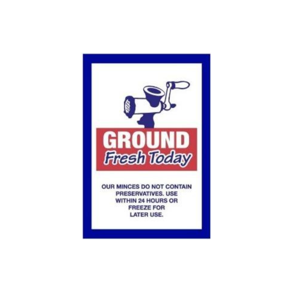 The ML-29-GF “Ground Fresh Today” meat label stickers are designed to convey freshness instantly. Made from food-safe, high-adhesion material, they adhere securely to trays, packaging, or wraps—even in refrigerated conditions. Their bold “Ground Fresh Today” message assures customers that the product was freshly processed, enhancing trust and purchase confidence. Perfect for butcher counters, deli displays, and meat department sections, these labels combine clarity, professionalism, and freshness promotion in one effective tool.